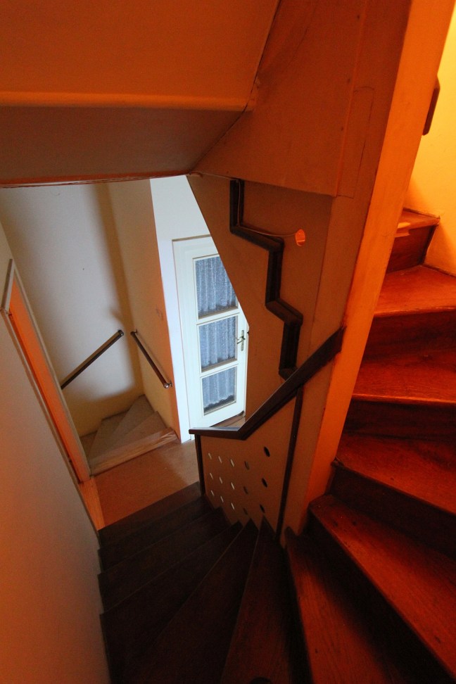 The installation (amplified sound of water through the four floors of the house; in situ photographs of opened windows, doors and mirror; video) treats the house as a sculptural/metaphysical object. Interventions accentuate the transitory condition of the space and the human psychic.