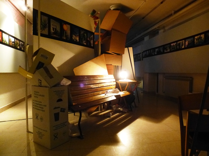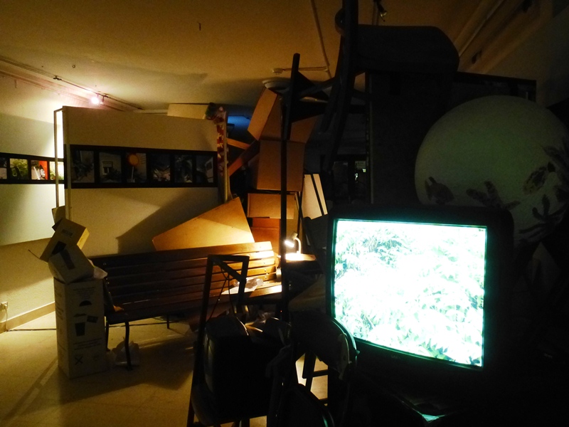 Tonight, the gallery of the cultural center, if it still exists at all, probably looks like a junkyard, an underground tunnel filled with litters, props with no clear purpose, torn posters, photographs, and objects that have lost their attribution forever, all resting among the shadows of sharp leaves, under swaying branches of pajasen1, creating the atmosphere of some kind of destroyed colonial empire in the tropics, in these ruins.