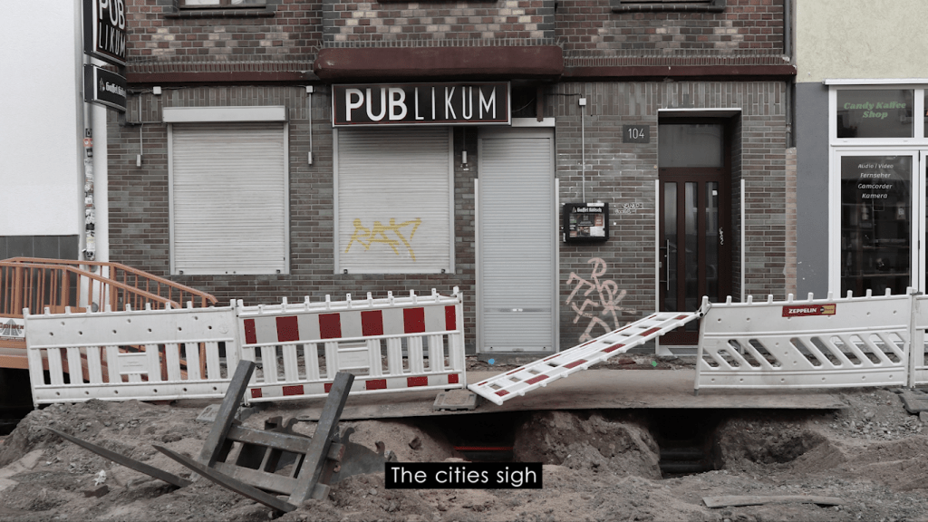 The context-specific photo-video essay was created as part of the course Dreaming Venice – About Time, Space, and Beauty during the COVID-19 pandemic. A key component of the course was a field trip to Venice, which, due to travel restrictions, could not take place. Instead, I searched for locations in Cologne, where I live, that evoked the essence of Venice. In both form and content, this photo-video poem explores the inability to move freely and the tactics of navigating available physical and imaginative spaces despite movement restrictions. At the same time, it engages with the course’s theme by reflecting on the engineered environment and the human desire to conserve beauty, destabilizing conventional notions of aesthetics while exploring the poetics of transience and letting go. The ambiguities within the concept are emphasized through the medium—a video composed of still images and fragments of thoughts, unfolding in a rhythmic flow.